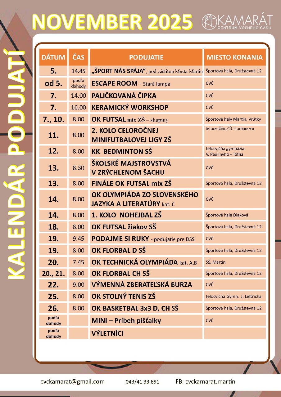 KALENDÁR PODUJATÍ