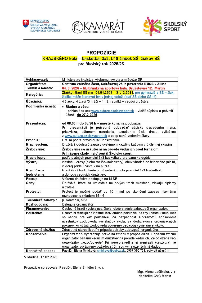 KK Basketbal 3x3, D, CH SŠ